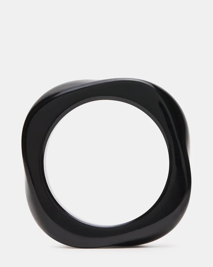 Această brățară curbată retro neagră redă estetica vintage printr-un design care se potrivește perfect cu orice ținută. Silueta ușor arcuită flatează încheietura mâinii, păstrând în același timp farmecul nostalgic. Realizat cu accent pe claritate, materialul reflectă frumos lumina, făcându-l un accesoriu discret, dar totuși impresionant.