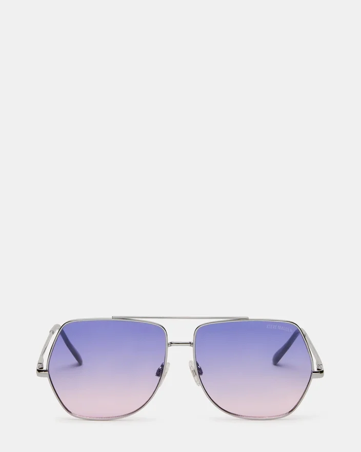 Ochelarii de soare Graysen argintii prezintă un design aviator atemporal, cu o ramă argintie elegantă, care oferă un stil clasic cu un plus de modernitate. Lentilele cu gradient albastru trec lin de la un albastru mai intens în partea de sus la nuanțe mai deschise în partea de jos, oferind atât protecție UV, cât și o estetică sofisticată. Perfecți pentru zilele însorite și suficient de versatili pentru a completa orice ținută.