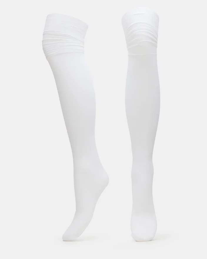 Aceste colanți preppy peste genunchi, cu picior, de culoare albă, sunt confecționați cu măiestrie din materiale durabile pentru a asigura o uzură îndelungată și confort. Lungimea lor extinsă oferă o acoperire sporită și o siluetă elegantă, făcându-i un accesoriu esențial pentru a ridica orice ținută atât prin stil, cât și prin practicitate.
