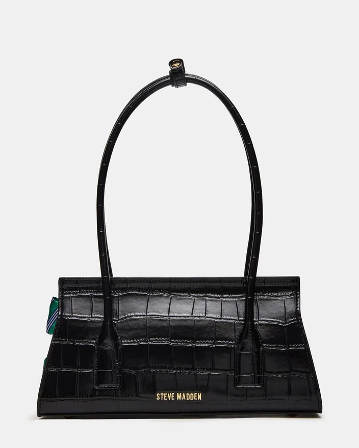 Geanta Milan Negru îmbină designul clasic inspirat din moda masculină cu funcționalitatea modernă. Această geantă structurată, alungită, cu curea de umăr, prezintă o estetică preppy rafinată, accentuată de un pandantiv distinctiv în formă de papion, asociat cu un pandantiv în formă de lacăt, pentru o sofisticare subtilă. Închiderea sigură cu magnet și interiorul cu fermoar în spate asigură un spațiu de depozitare organizat, făcând-o atât elegantă, cât și practică pentru utilizarea zilnică.