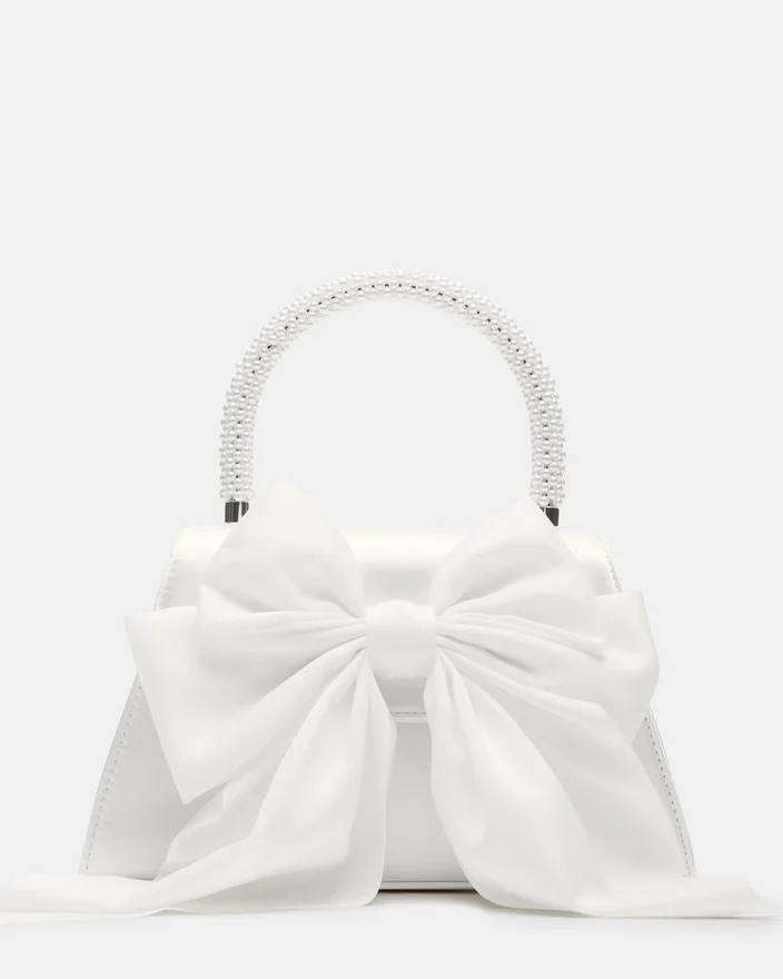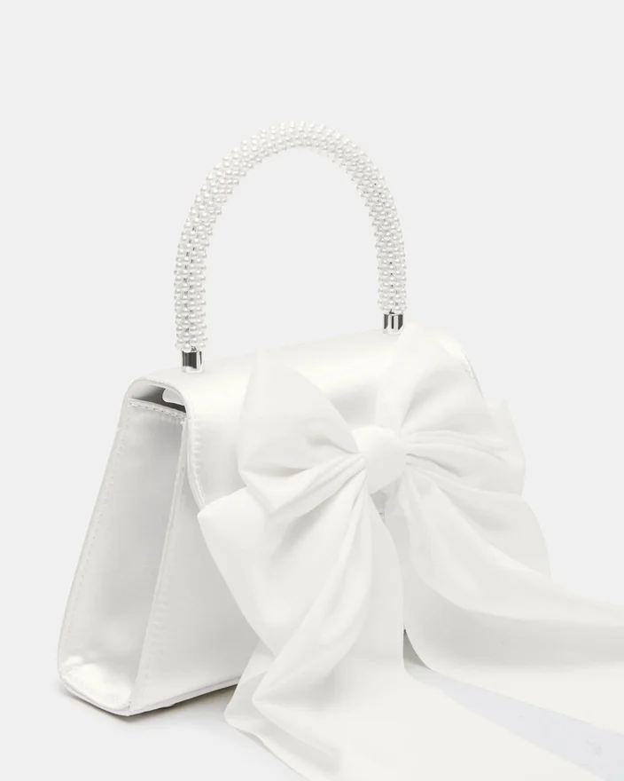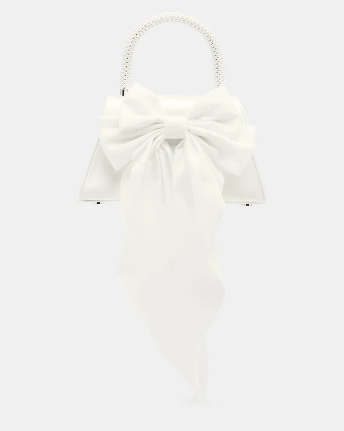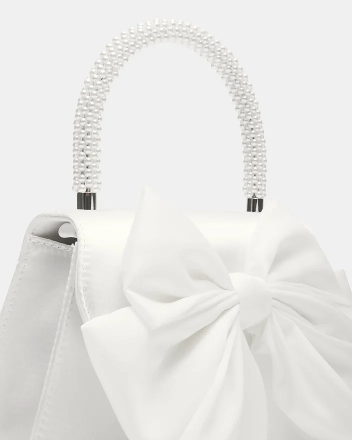 Vă prezentăm sofisticata geantă Cosette. Realizată cu măiestrie din satin fin și cu un mâner superior cu mărgele, această geantă elegantă are o fundă lungă din satin și un mâner superior structurat pentru un plus de glamour. Buzunarul interior cu fante în spate și cureaua detașabilă cu lanț adaugă un plus de practicitate siluetei sale trapezoidale, cu unghiuri.