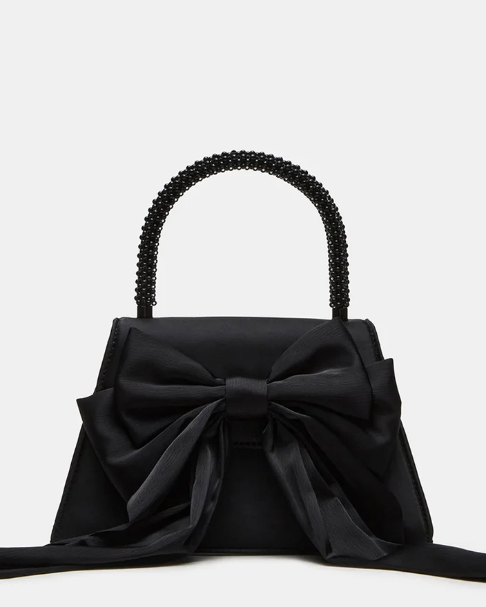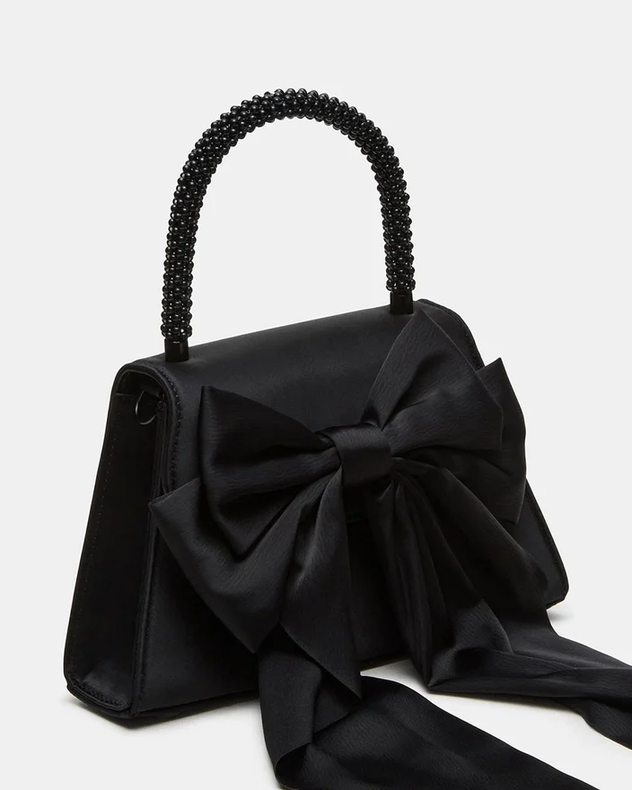 Vă prezentăm sofisticata geantă Cosette. Realizată cu măiestrie din satin fin și cu mâner superior cu mărgele, această geantă elegantă are o fundă lungă din satin și un mâner superior structurat pentru un plus de glamour. Buzunarul interior cu fante și cureaua detașabilă cu lanț adaugă practicitate siluetei sale trapezoidale, cu unghiuri.