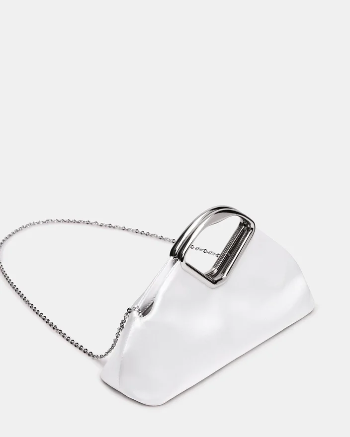 Geanta Barbara Albă combină eleganța rafinată cu sofisticarea practică. Această geantă de mână are o siluetă moale, rotunjită, cu linii contemporane, curate, fiind confecționată dintr-un material luxos, cu o textură excepțională la atingere. Accesoriile metalice personalizate oferă confort ergonomic și un stil distinctiv, în timp ce închiderea magnetică asigură o fixare sigură. Compartimentul interior pentru carduri menține lucrurile esențiale organizate, iar cureaua detașabilă cu lanț oferă opțiuni versatile de purtare — poart-o ca o poșetă de mână sau pur-o fără a-ți ocupa mâinile. O piesă atemporală care trece fără probleme de la zi la seară.