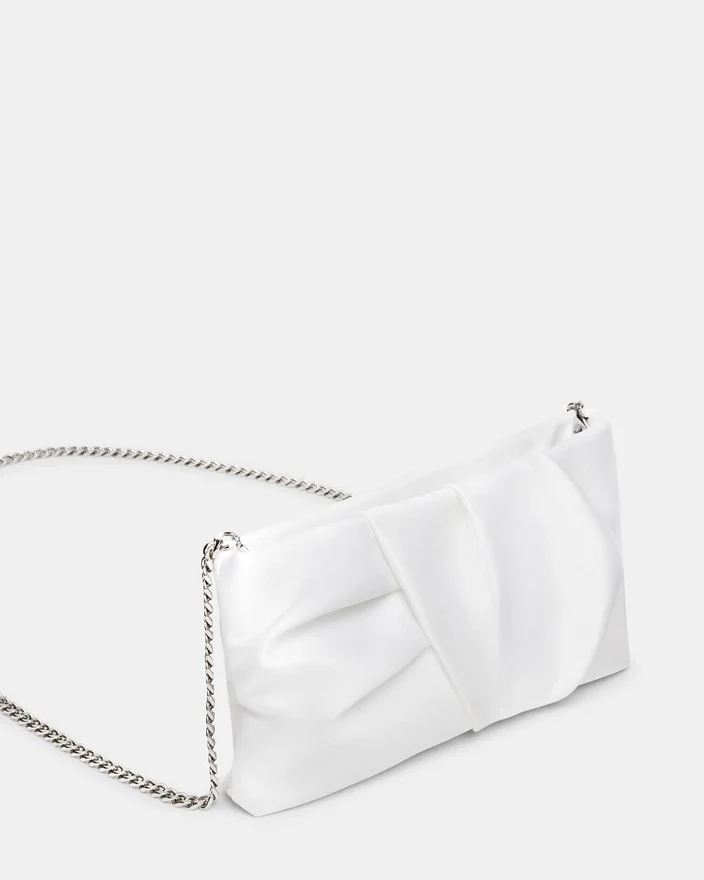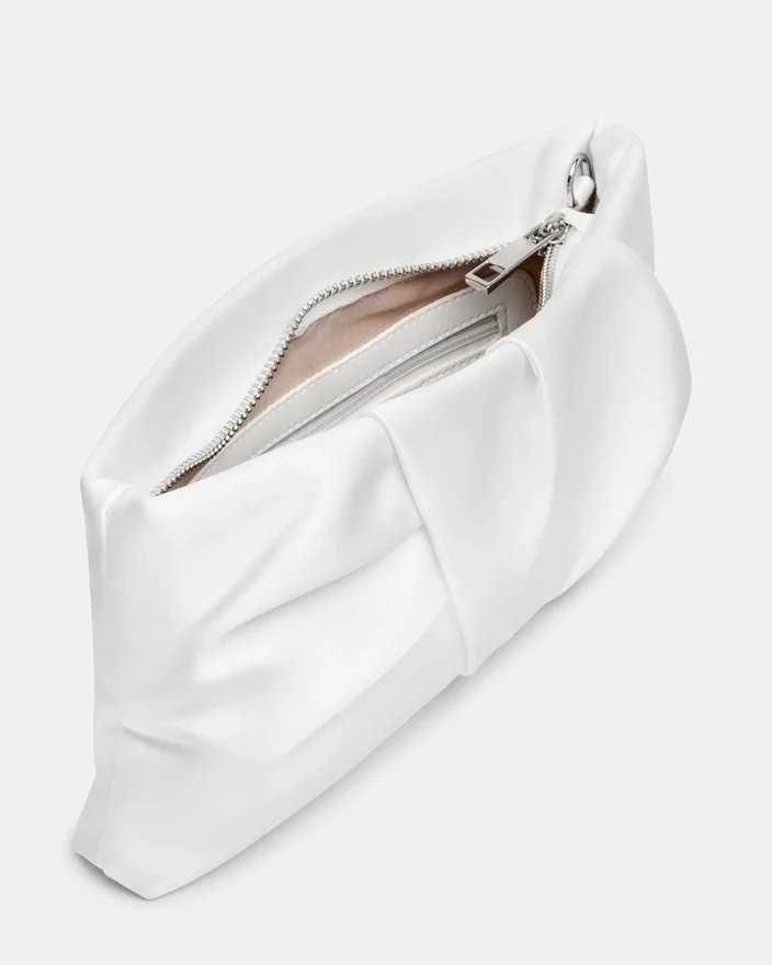Geanta Lilia Albă evidențiază măiestria rafinată prin silueta sa alungită și detaliile complexe plisate manual. Confecționată din țesătură somptuoasă de satin, această geantă clutch oferă o experiență tactilă luxoasă prin drapajul său moale și fluid. Închiderea cu fermoar metalic în partea de sus asigură depozitarea în siguranță, în timp ce organizarea interioară bine gândită menține obiectele esențiale la îndemână. Cureaua detașabilă cu lanț pentru purtare pe umăr oferă un stil versatil — poart-o ca poșetă de mână pentru evenimentele de seară sau purt-o pe umăr pentru a avea mâinile libere.
