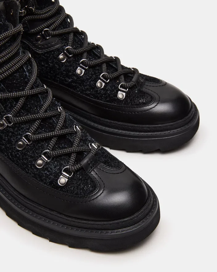 Cizma Yosemite Black Multi Lug cu șireturi combină durabilitatea robustă cu stilul rafinat. Talpa lor robustă cu crampoane oferă aderență și stabilitate de încredere, ideale pentru diverse terenuri și condiții meteorologice. Designul cu șireturi asigură o potrivire sigură, în timp ce finisajul multicolor adaugă un aspect versatil și contemporan.