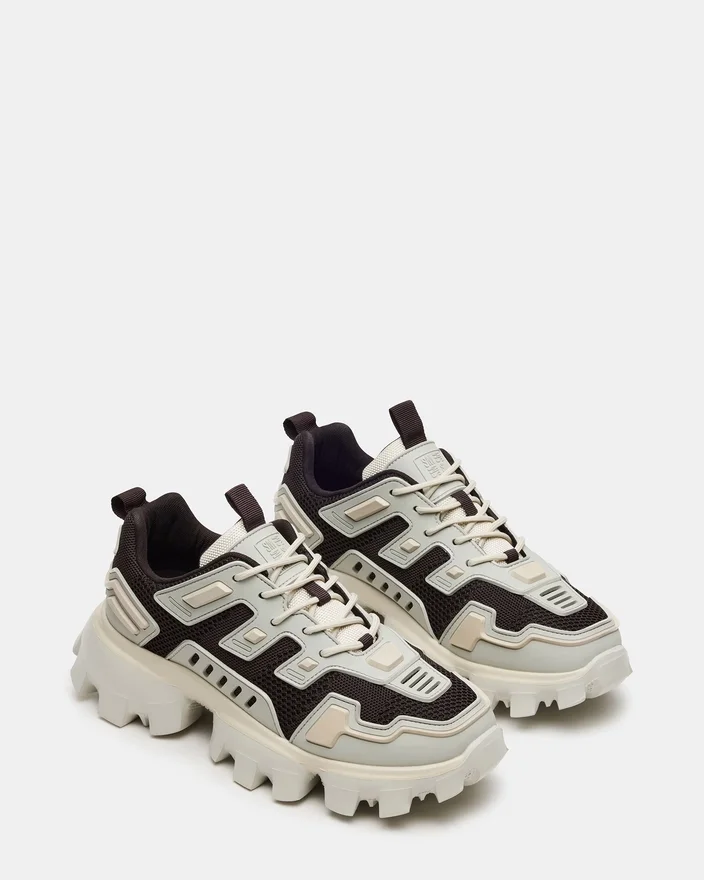 Adidașii Ponce combină talpă modelată exagerată cu o parte superioară detaliată, întărită cu accente texturate unghiulare.