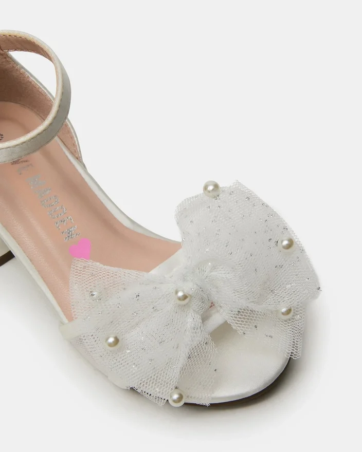 Vă prezentăm modelul Debra White pentru copii mici, o sandală fermecătoare concepută având în vedere atât stilul, cât și confortul. Acest design delicat prezintă o siluetă cu vârful deschis, cu o curea din plasă respirabilă peste picior, combinată cu un pantof cu toc gros și robust pentru stabilitate și susținere. Cureaua de siguranță pentru gleznă menține piciorușele ferm în poziție în timpul jocului activ, în timp ce o fundă elegantă, împodobită cu ornamente din perle, adaugă o notă de rafinament. Perfect pentru ocazii speciale sau pentru purtarea de zi cu zi, acest model de pantof cu toc combină o construcție practică cu detalii rafinate pe care părinții și copiii mici le vor îndrăgi.