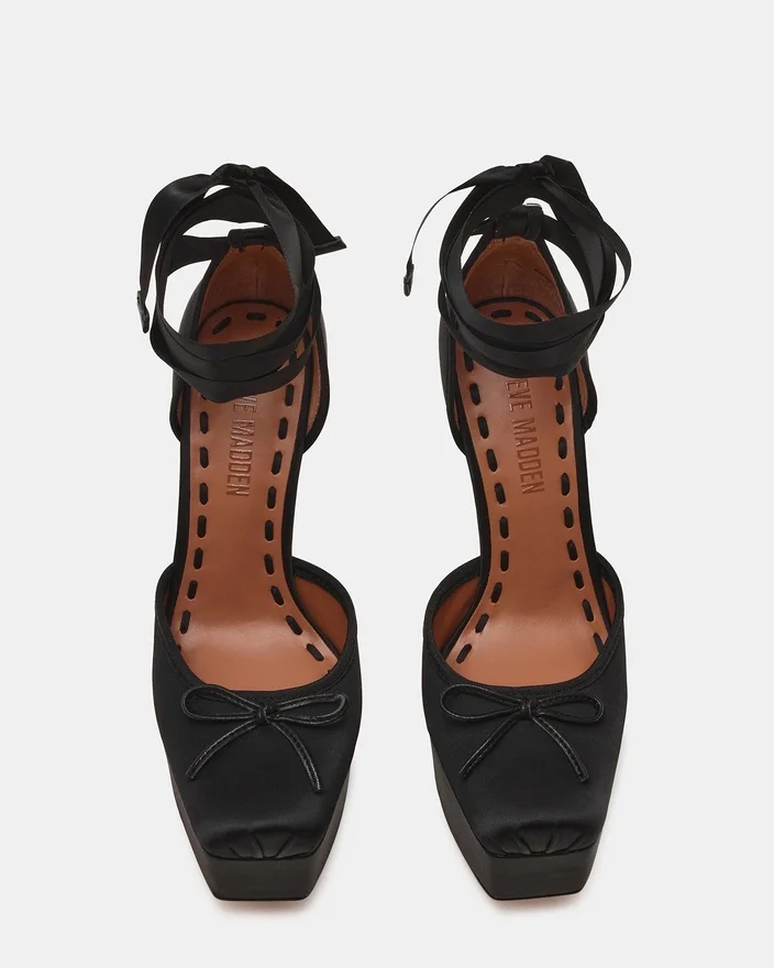 Îmbunătățiți-vă stilul cu pantofii cu toc de balet Listen din satin negru, cu talpă platformă și un design delicat cu șireturi, inspirat de pantofii clasici de balet. Realizați pentru a oferi atât eleganță, cât și stabilitate, acești pantofi cu toc vă pun în valoare silueta, asigurându-vă în același timp o purtare plină de încredere. Finisajul lor unic adaugă o notă de lux, făcându-i perfecți pentru ocazii sofisticate sau pentru o ieșire în oraș care iese în evidență.