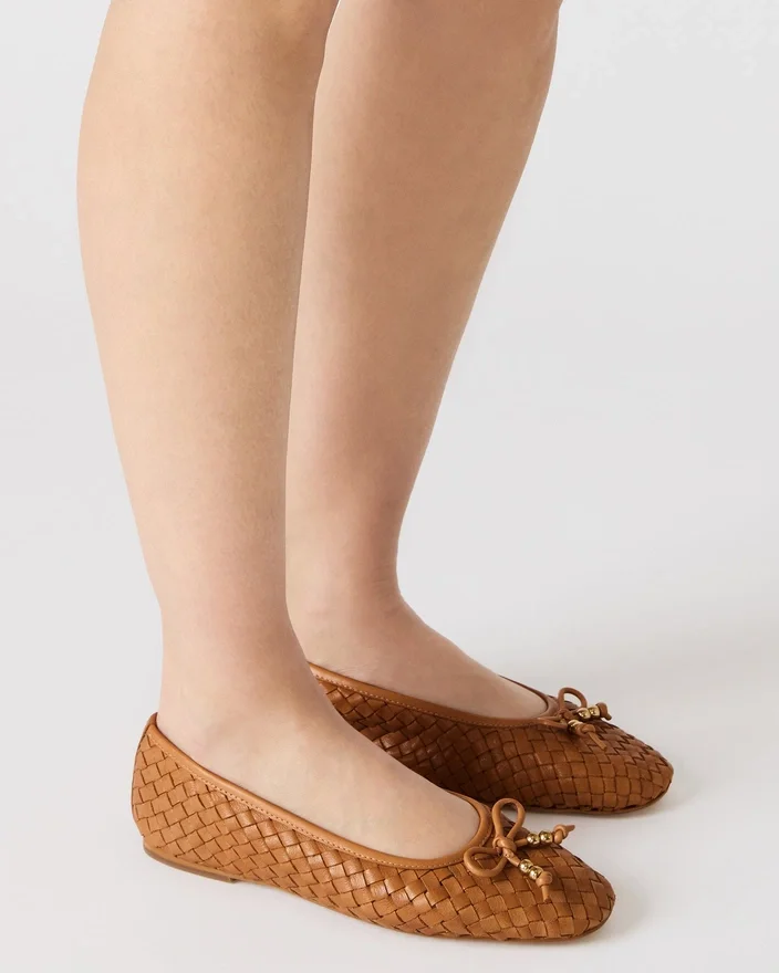 Balerinele Divy din piele de culoare coniac evidențiază măiestria rafinată prin construcția țesută și ornamentul grațios în formă de fundă. Acest model cu vârf rotund echilibrează estetica minimalistă cu eleganța funcțională, făcându-l o alegere ideală pentru cei care caută o pereche de balerine versatile, potrivite pentru orice ocazie. Detaliile țesute texturate adaugă un plus de interes vizual, păstrând în același timp rafinamentul discret pentru care sunt cunoscute balerinele.