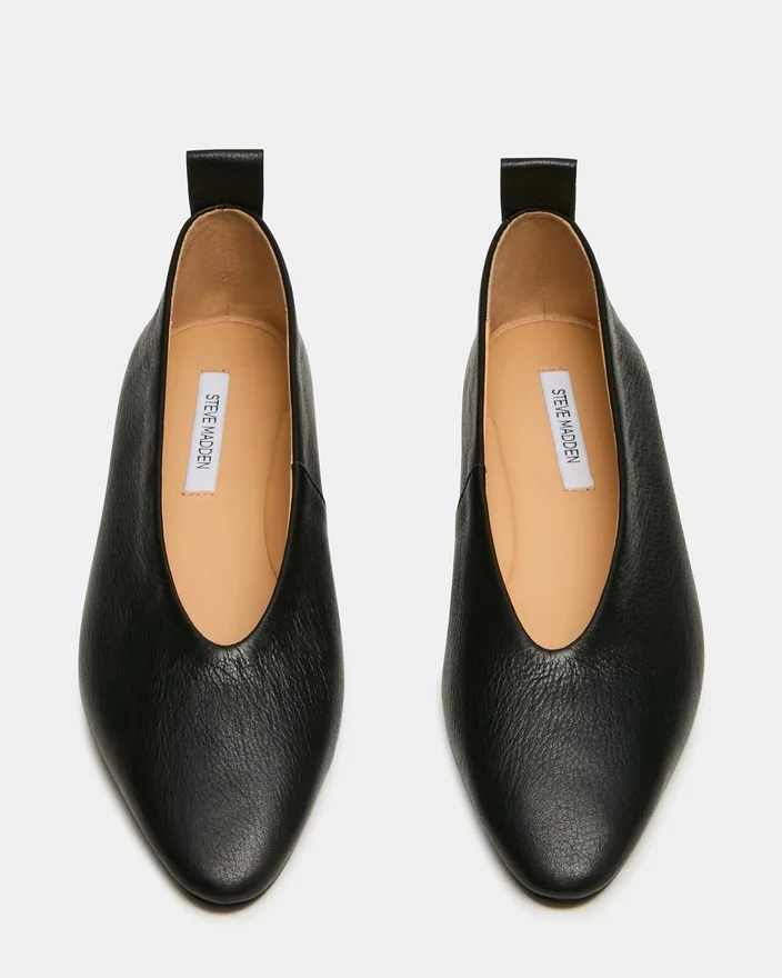 Balerinii Swanky din piele neagră cu vârf migdalat reprezintă un exemplu de rafinament discret. Silueta lor creează o linie vizuală elegantă, în timp ce construcția plată asigură confortul pe tot parcursul zilei. Acest design face legătura între estetica minimalistă și confortul practic, făcându-i pantofii perfecți pentru cei care apreciază încălțămintea de calitate. Perfect pentru a-ți crea o garderobă sofisticată și versatilă, care depășește limitele ocaziilor și anotimpurilor.