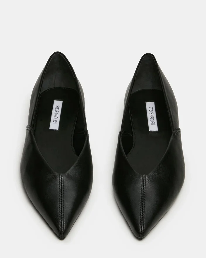 Ridicați-vă eleganța de zi cu zi cu balerinii Tovi din piele neagră cu vârf ascuțit. Silueta alungită creează o linie flatantă, în timp ce profilul clasic de balerină oferă o versatilitate atemporală. Perfecți pentru a trece fără probleme de la birou la seară, acești balerini oferă o sofisticare discretă, fără compromisuri. O adevărată investiție într-un stil rafinat și durabil.