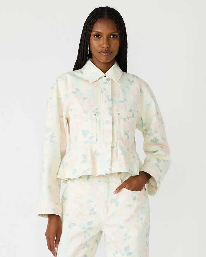 Jacheta florală Sloan bej-piersică este o jachetă cu mâneci lungi concepută pentru a completa setul asortat, oferind un look armonios și elegant. Creată pentru cei care apreciază moda coordonată, această jachetă combină acoperirea funcțională cu un model distinctiv, făcând-o ideală pentru stratificare sau ca piesă de efect în garderoba ta.