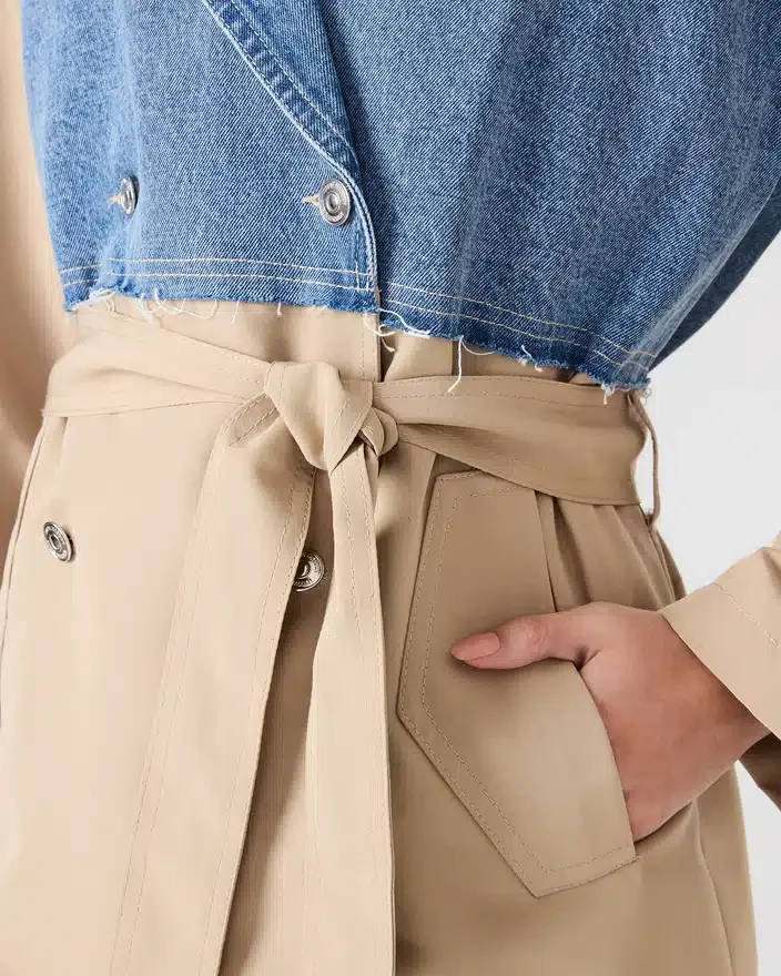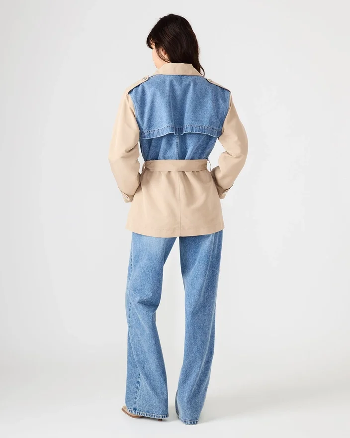 Paltonul Shyla din denim multicolor oferă o îmbrăcăminte versatilă, cu detalii de design bine gândite. Această jachetă cu mâneci lungi și nasturi are un guler clasic și o structură durabilă din denim și kaki, care se adaptează perfect de la un sezon la altul.