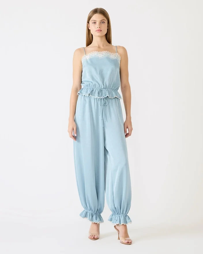 Pantalonii Roan Dusty Blue combină o siluetă contemporană cu un design funcțional. Acești pantaloni de tip parașută au o închidere distinctivă cu nod în față, care creează o potrivire rafinată și ajustabilă, menținând în același timp estetica relaxată a stilului. Țesătura structurată cade elegant, oferind libertate de mișcare fără compromisuri. Perfecți ca piesă de sine stătătoare sau ca parte a unui set asortat, acești pantaloni trec fără probleme de la ținute Casual la ocazii elegante. Nuanta de albastru prăfuit oferă opțiuni versatile de styling pentru întreaga ta garderobă.