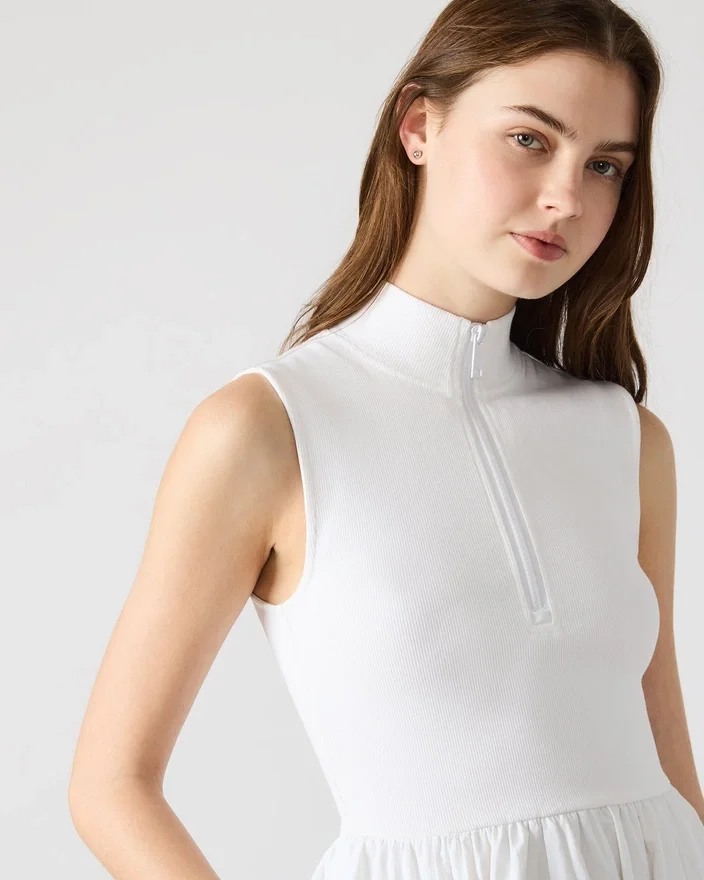 Rochia Berlin este o adăugire versatilă și chic la orice garderobă. Cu o combinație stilată de top din tricot fără mâneci și fustă din nailon în linie A, această rochie de lungime medie este atât confortabilă, cât și la modă. Perfectă pentru primăvară, are fermoar în față, guler înalt și buzunare cu capse pentru funcționalitate suplimentară. Îmbunătățește-ți stilul cu această rochie de lungime medie.