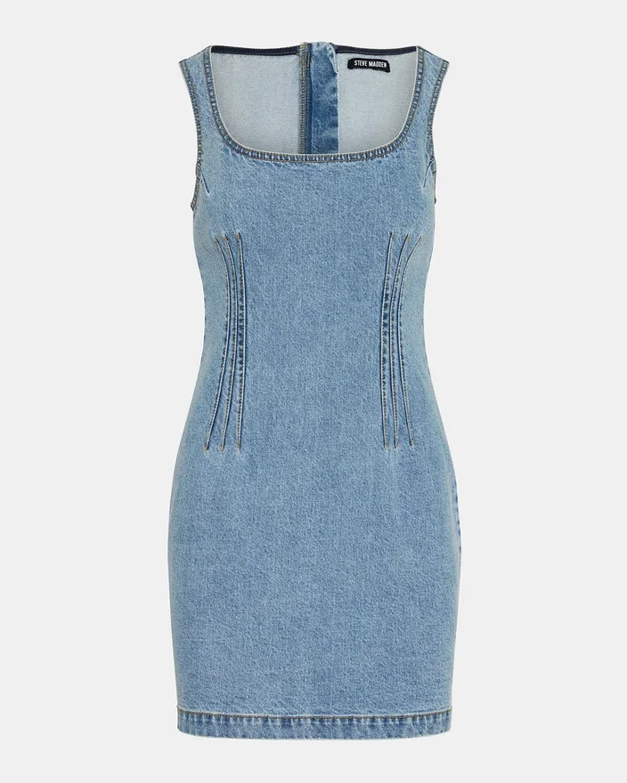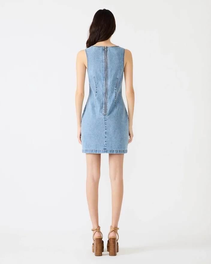 Rochia Noelle Forever Blue este o rochie mini din denim contemporan, cu o închidere distinctivă cu fermoar în spate, care adaugă un plus de modernitate unei siluete atemporale. Confecționată din denim de calitate, această piesă trece fără efort de la ținutele de zi la cele de seară — asorteaz-o cu Sneakersi pentru un look casual sau completeaz-o cu Pantofi cu toc și Accesorii pentru ocazii de seară. Detaliul strategic al fermoarului din spate creează un efect vizual interesant, oferind în același timp funcționalitate practică. O piesă versatilă, esențială în garderobă, care echilibrează farmecul clasic al denimului cu elemente de design contemporane.