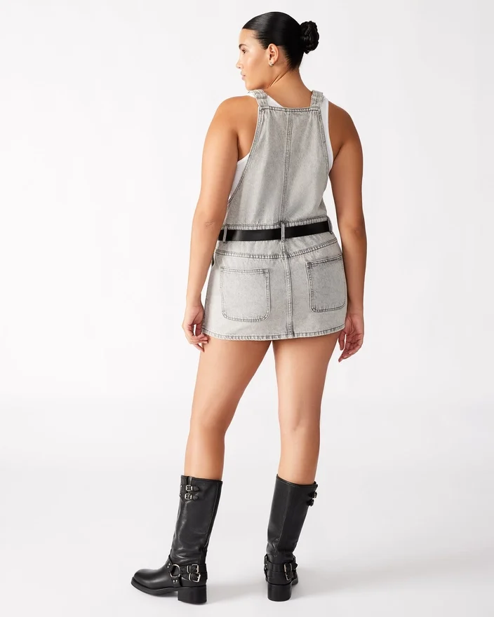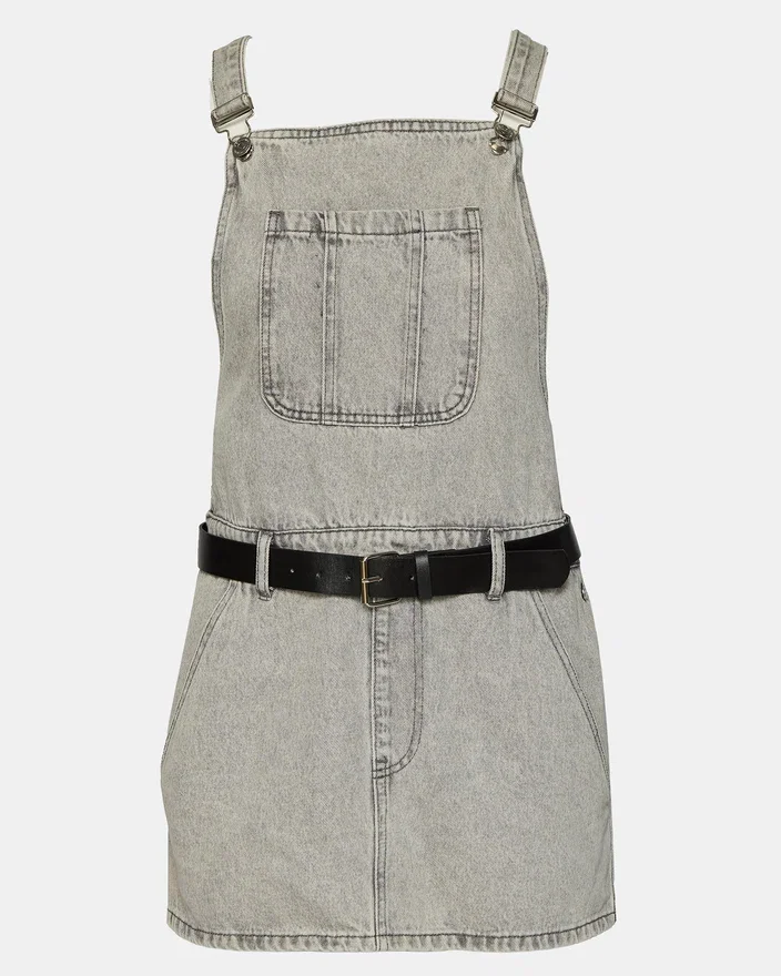 Vă prezentăm rochia Tamia, o piesă versatilă pentru garderoba dvs. Confecționată din denim spălat, această rochie mini în stil salopetă are un buzunar aplicat practic pe corset și o centură separată pentru o potrivire personalizabilă. Purtați-o elegant sau casual pentru orice ocazie.