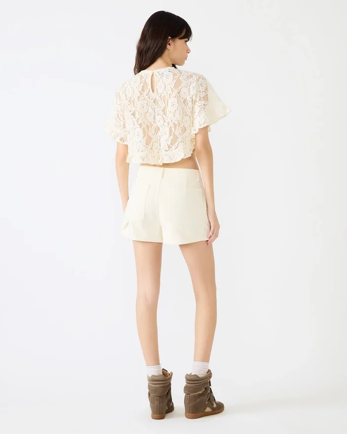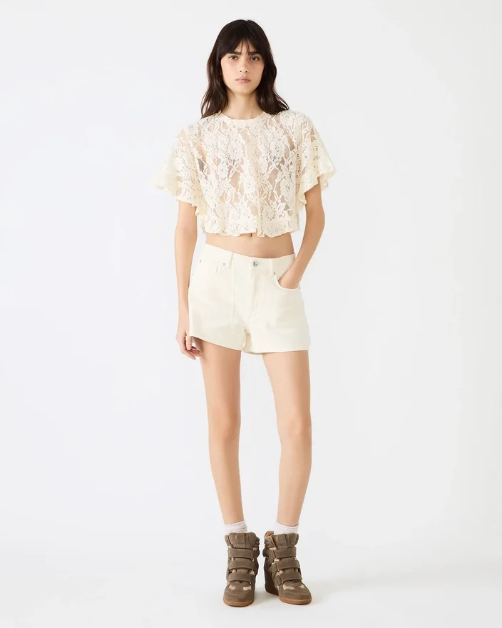 Îmbunătățește-ți stilul de îmbrăcare în straturi cu bluza Callum crem. Această siluetă cropped cu mâneci scurte prezintă detalii delicate din dantelă și panouri din plasă transparentă care creează un look sofisticat fără efort. Perfectă pentru a fi purtată peste ținute de bază sau ca piesă de sine stătătoare, construcția aerisită oferă confort și respirabilitate, în timp ce croiul cropped flatează proporțiile moderne. O piesă esențială și versatilă, care trece fără efort de la ținutele de zi la cele de seară.
