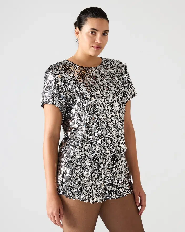 Îmbunătățiți-vă stilul cu bluza Cressa argintie, o bluză cu mâneci scurte, împodobită cu paiete, concepută pentru un look elegant și remarcabil. Perfect asortată ca parte a unui set, aceasta oferă o ținută armonioasă și chic, ideală pentru ocazii speciale și evenimente de seară. Paietele strălucitoare adaugă o strălucire rafinată, asigurându-vă că veți face o impresie de încredere și sofisticată.