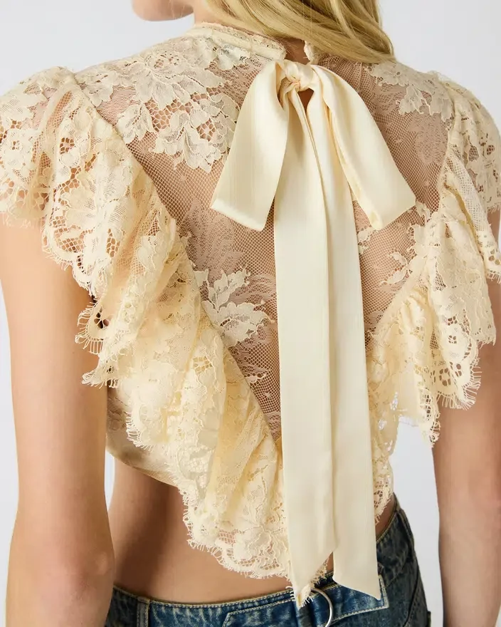 • Top din plasă și dantelă