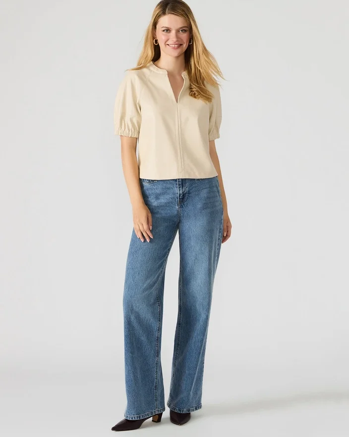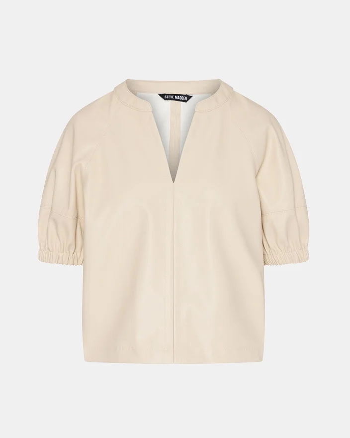 Îmbogățiți-vă garderoba cu topul Roxanne, cu mâneci bufante scurte, confecționat din piele sintetică de lux. Această piesă proiectată cu măiestrie combină textura îndrăzneață cu o siluetă flatantă, perfectă pentru a face o declarație sofisticată în orice context.