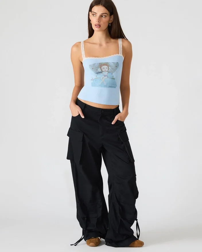 Maioul fără mâneci Love Goldie Tank Surf Blue are bretele cu bordură delicată din dantelă pentru o notă rafinată și feminină, combinată cu un design grafic distinctiv care îl face să iasă în evidență. Creat pentru o potrivire confortabilă, acest maiou fără mâneci îmbină stilul și individualitatea, făcându-l o alegere versatilă pentru ținute Casual sau elegante pe vreme caldă.