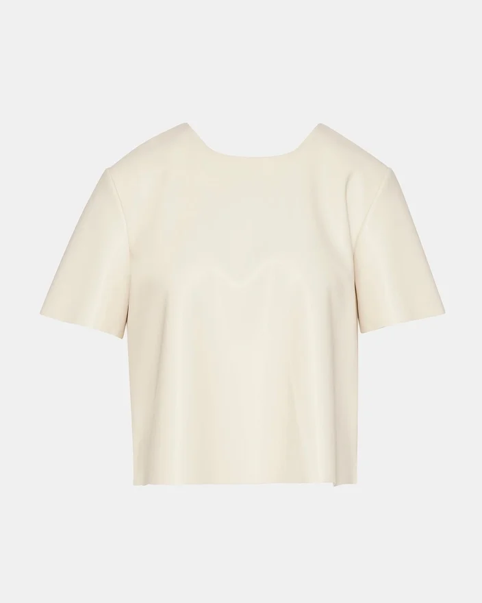 Vă prezentăm luxosul nostru top Ezra. Îmbunătățiți-vă stilul cu acest tricou din imitație de piele cu mâneci scurte. Fermoarul metalic adaugă o notă de rafinament acestei piese chic.