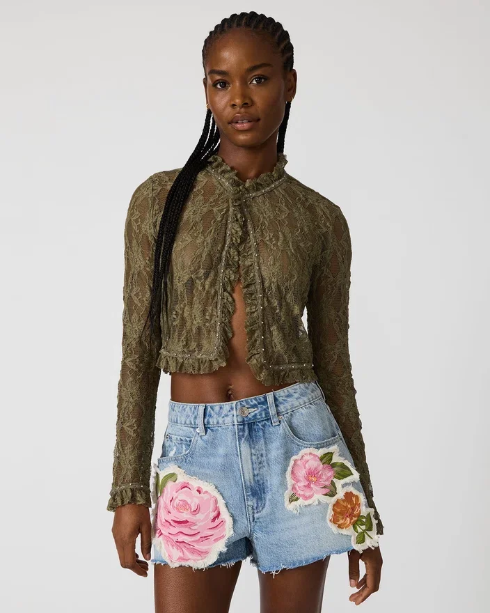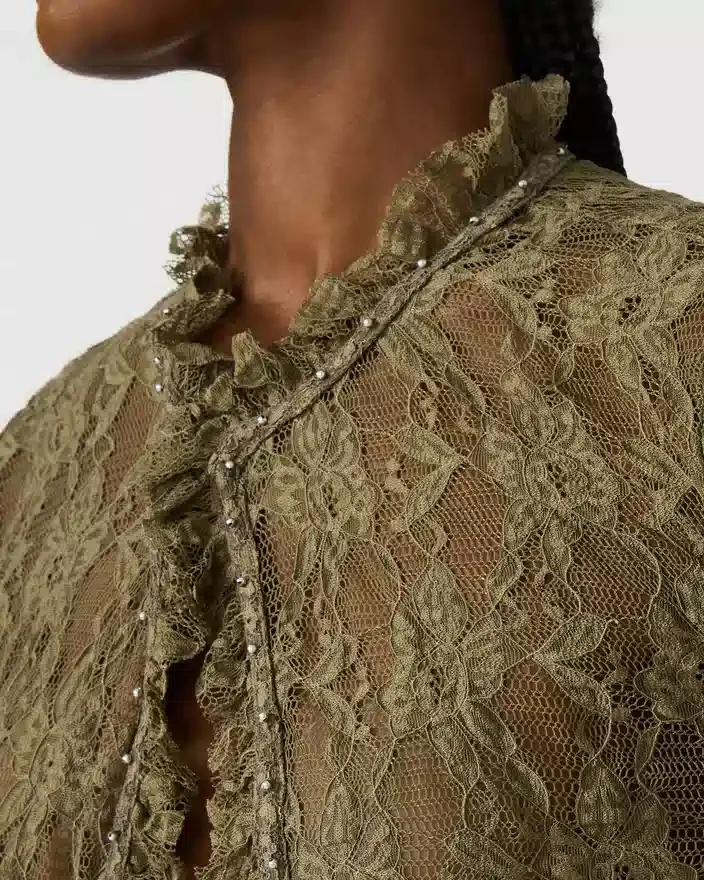 Topul Linden Mountain Green îmbină eleganța naturală cu detaliile îndrăznețe. Țesătura din dantelă transparentă oferă o estetică delicată și romantică, în timp ce închiderea din față asigură o versatilitate ușoară în stilizare. Accentele cu ținte adaugă un plus de originalitate, făcând această piesă perfectă pentru a fi purtată în straturi sau singură. Perfect pentru o ieșire în oraș sau pentru un look Casual cu blugii tăi preferați.