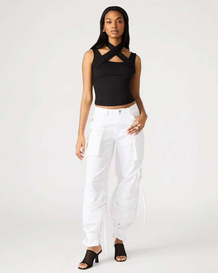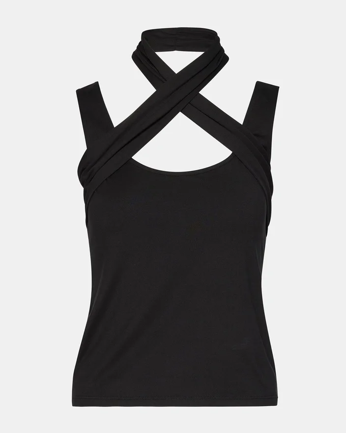 Vă prezentăm topul Percy, un top fără mâneci cu un design unic încrucișat. Acest top oferă un stil avangardist datorită designului său inovator, perfect pentru a face o declarație de stil. Confecționat din materiale de înaltă calitate pentru o potrivire confortabilă.