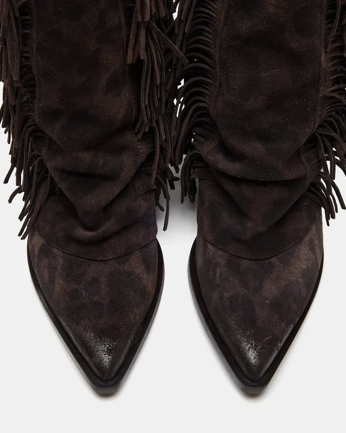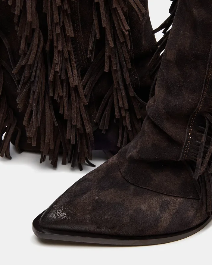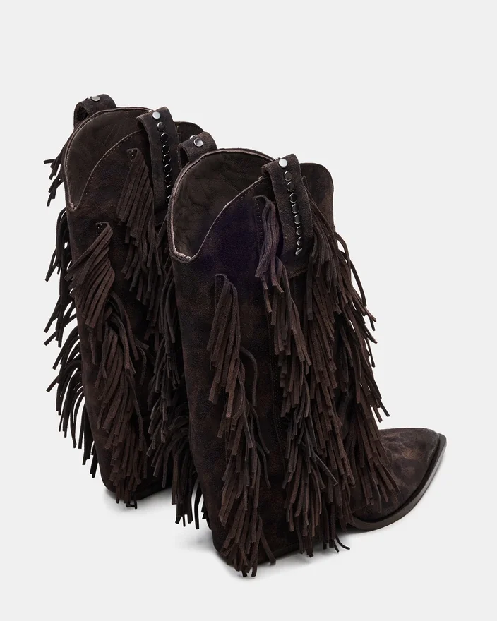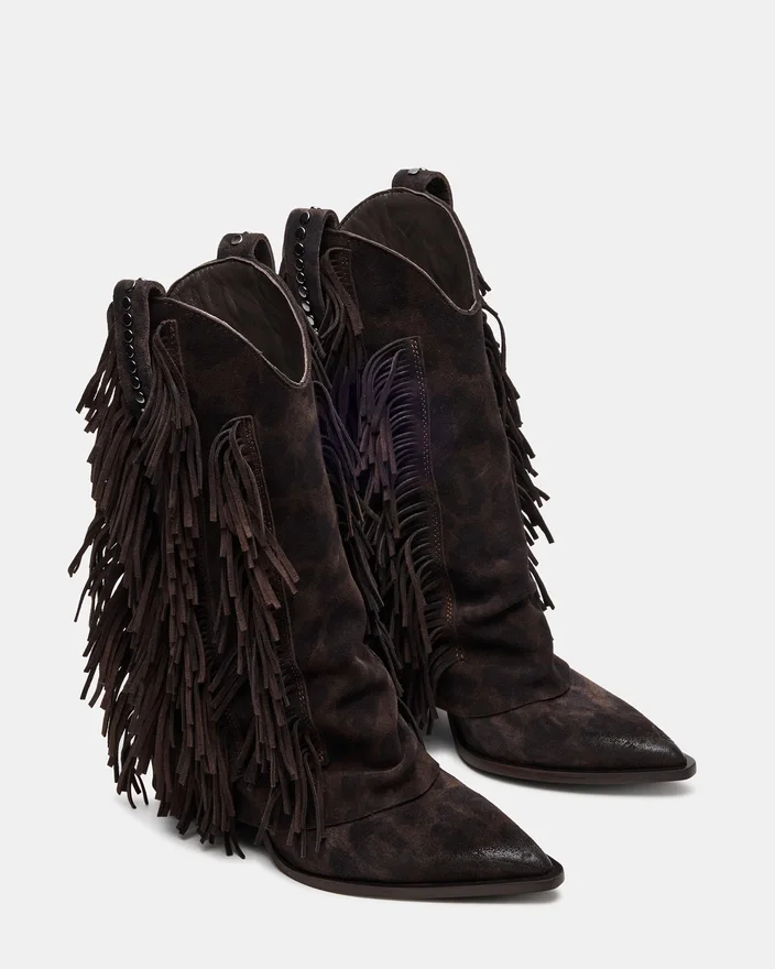 Botinele Landmark Brown Leopard pun în evidență măiestria artizanală cu un Stil Western îndrăzneaț. Cu accente elegante de franjuri, detalii cu ținte și o siluetă cu manșetă, aceste botine oferă un aspect distinctiv. Vârful ascuțit le accentuează profilul elegant, făcându-le alegerea ideală pentru cei care caută o combinație versatilă de personalitate și rafinament.