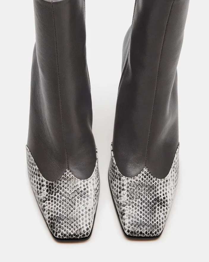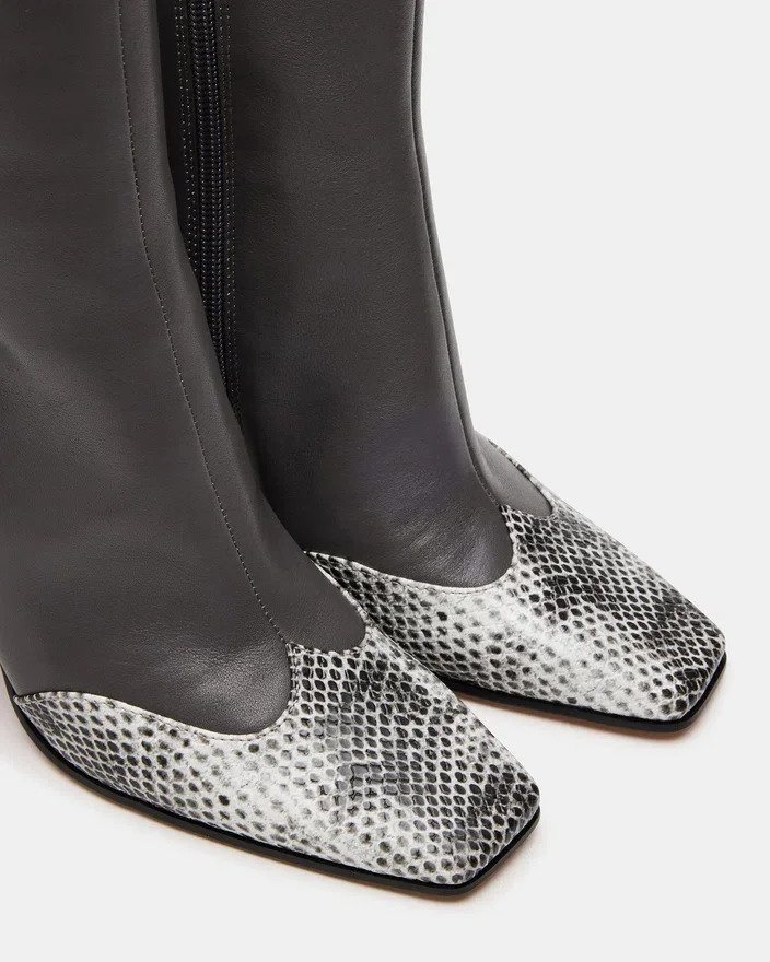 Îmbunătățiți-vă look-ul cu cizmele noastre cu toc din piele gri Lyle, proiectate cu un vârf pătrat la modă. Fie că este vorba de o cizmă chic pentru o ieșire în oraș sau de o notă stilată pentru ținuta dvs. de zi cu zi, bucurați-vă de versatilitatea și confortul acestui articol indispensabil.