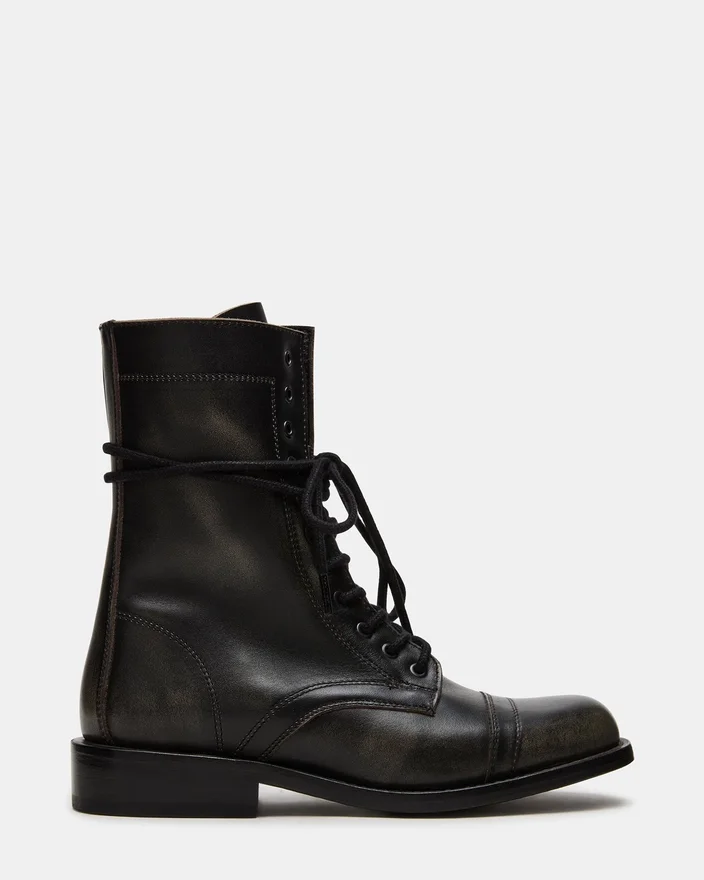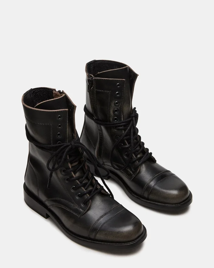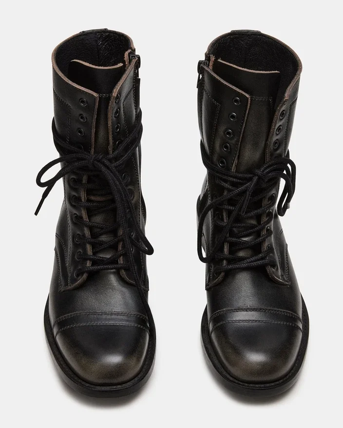 Ghetele de gleznă Theron Black Distressed, cu șireturi, în stil motociclist, combină stilul robust cu o construcție durabilă. Concepute pentru a fi purtate cu încredere, aceste botine au un finisaj uzat care adaugă un plus de personalitate oricărei ținute. Designul cu șireturi asigură o potrivire personalizată, în timp ce talpa robustă oferă aderență și susținere potrivite pentru aventurile de zi cu zi. O alegere perfectă pentru cei care caută atât funcționalitate, cât și un stil îndrăzneț într-o pereche de cizmă versatile.