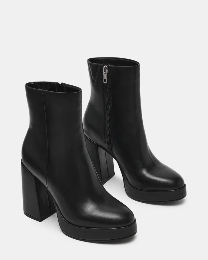Îmbogățiți-vă colecția de încălțăminte cu botinele cu toc gros și platformă din piele neagră Tyra. Confecționate din materiale de calitate superioară, aceste botine oferă atât stil, cât și stabilitate, datorită tocului gros și tălpii cu platformă. Înălțimea până la gleznă asigură o purtare versatilă, făcându-le ideale pentru ținute elegante sau pentru a adăuga un plus de personalitate ținutelor Casual. Construcția durabilă asigură confort și susținere de lungă durată, perfectă pentru purtare îndelungată. O alegere expertă pentru cei care caută o siluetă modernă și plină de încredere.