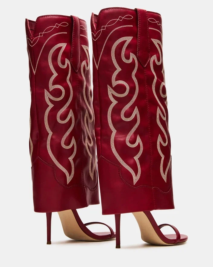 Realizate și proiectate cu măiestrie, cizmele Ravine Western Red cu manșetă până la genunchi au vârful deschis și toc stiletto pentru un plus de stil. Vârful rotunjit oferă confort, în timp ce designul elegant adaugă o notă de rafinament. Îmbunătățește-ți look-ul cu aceste cizme indispensabile.