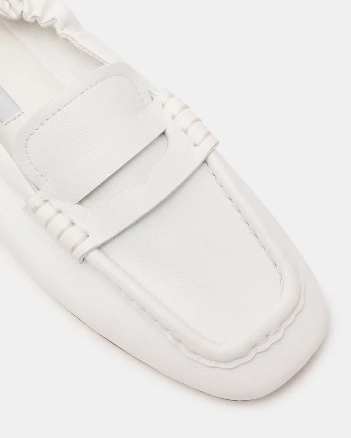 Mocasinii Eurry din piele albă cu vârf pătrat oferă o sofisticare atemporală cu o siluetă modernă. Realizați cu o atenție meticuloasă la detalii, acest model slip-on prezintă un vârf pătrat structurat care atrage atenția, păstrând în același timp un aspect versatil. Construcția rafinată asigură confortul pe tot parcursul zilei, făcându-l potrivit atât pentru ținute profesionale, cât și pentru ținute casual elegante.