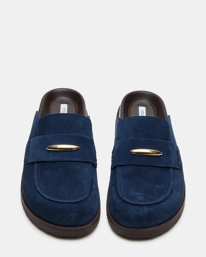 Pantofii Tobin Navy Suede Slip-On Mule Flat oferă măiestrie artizanală cu un finisaj neted și un design ușor de purtat. Silueta sa versatilă asigură confortul fără a sacrifica stilul, făcându-i ideali atât pentru ținute Casual, cât și pentru cele profesionale. Talpa plată oferă un sprijin stabil, perfect pentru a fi purtați toată ziua.