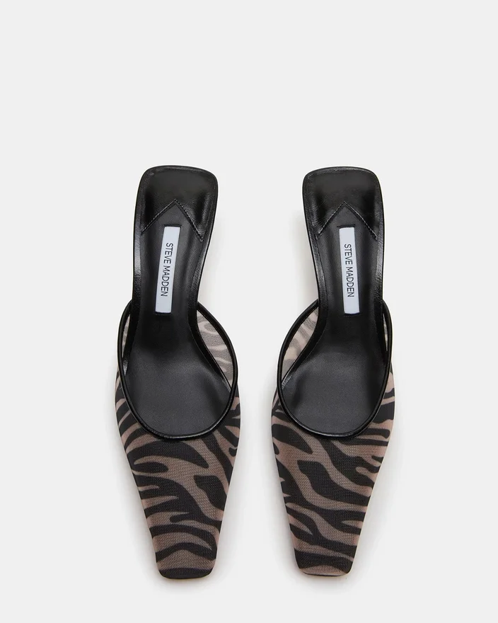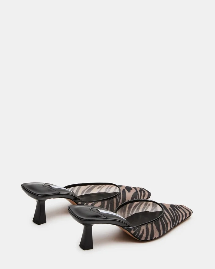 Mule-ul Alyse Zebra Mesh cu vârf pătrat oferă o sofisticare discretă prin silueta sa rafinată și tocul mic. Acest model versatil trece fără probleme de la birou la ținutele de seară, oferind confortul unui model slip-on fără a face compromisuri în ceea ce privește eleganța. Vârful pătrat structurat conferă un aspect contemporan, în timp ce înălțimea delicată a tocului asigură confortul pe tot parcursul zilei. O achiziție esențială pentru orice colecție de încălțăminte.