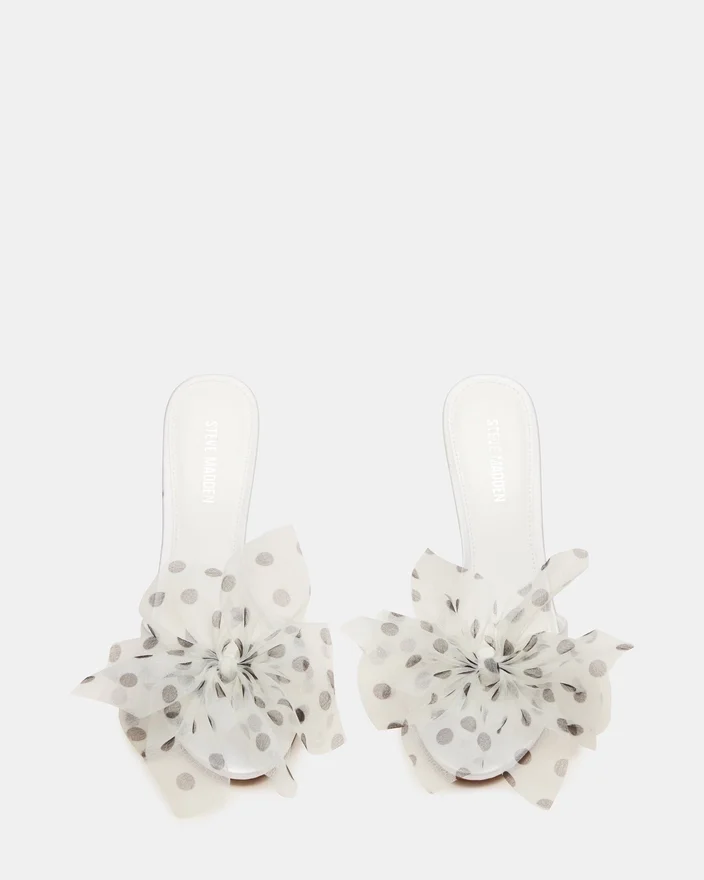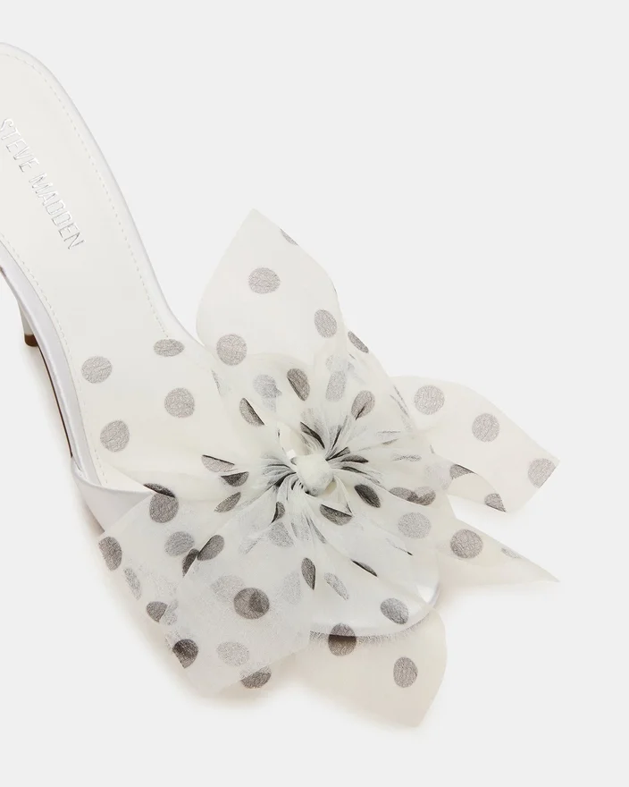 Mule-ul Davina Tulle Alb/Negru cu buline combină eleganța atemporală cu versatilitatea modernă. Acest stiletto cu vârf deschis prezintă o siluetă elegantă cu vârf rotund care îmbunătățește orice ținută. Designul simplificat al tocului oferă o înălțime sofisticată, menținând în același timp confortul pe tot parcursul zilei. Perfect pentru trecerea de la birou la seară, acest mule esențial oferă un stil rafinat cu o grație naturală.