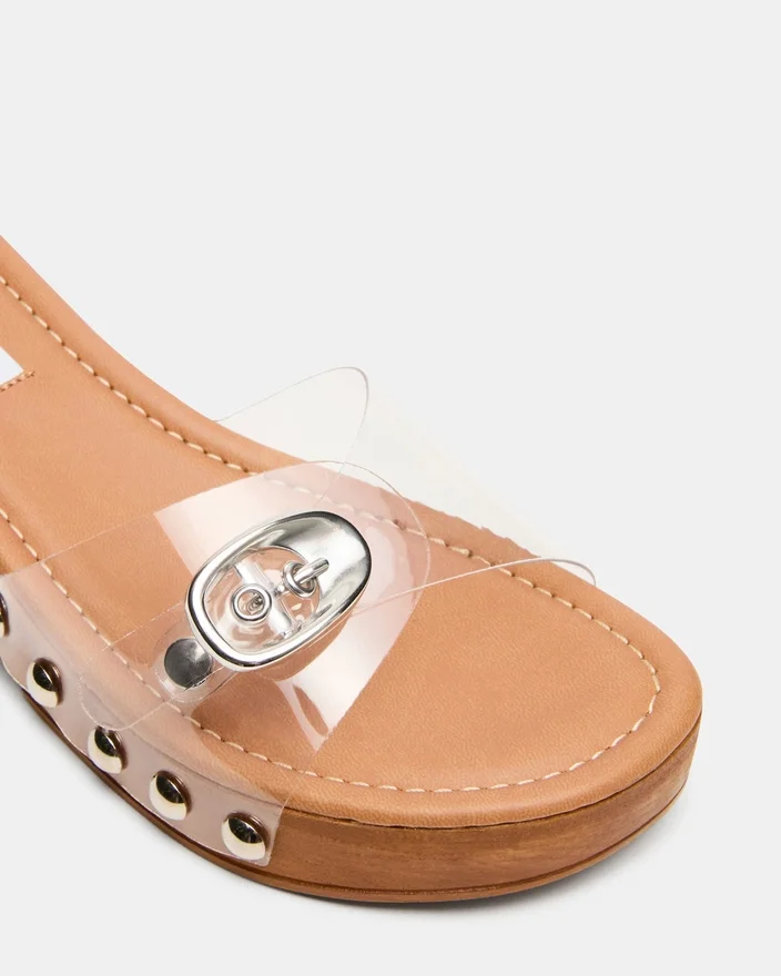 Mule-ul Fredi Clear combină designul contemporan cu confortul practic. Având o talpă robustă cu platformă care vă ridică pasul, această sandală prezintă o curea distinctivă cu cataramă pe partea superioară pentru susținere sigură și un aspect interesant. Silueta simplificată se potrivește perfect atât pentru ținutele Casual de zi, cât și pentru ocaziile de seară, oferind opțiuni versatile de styling.