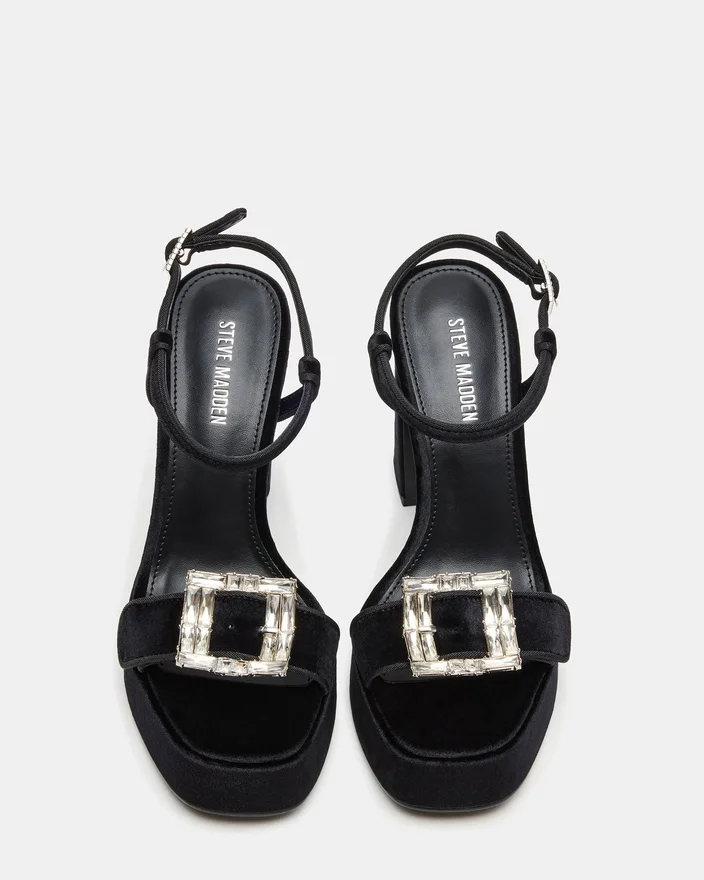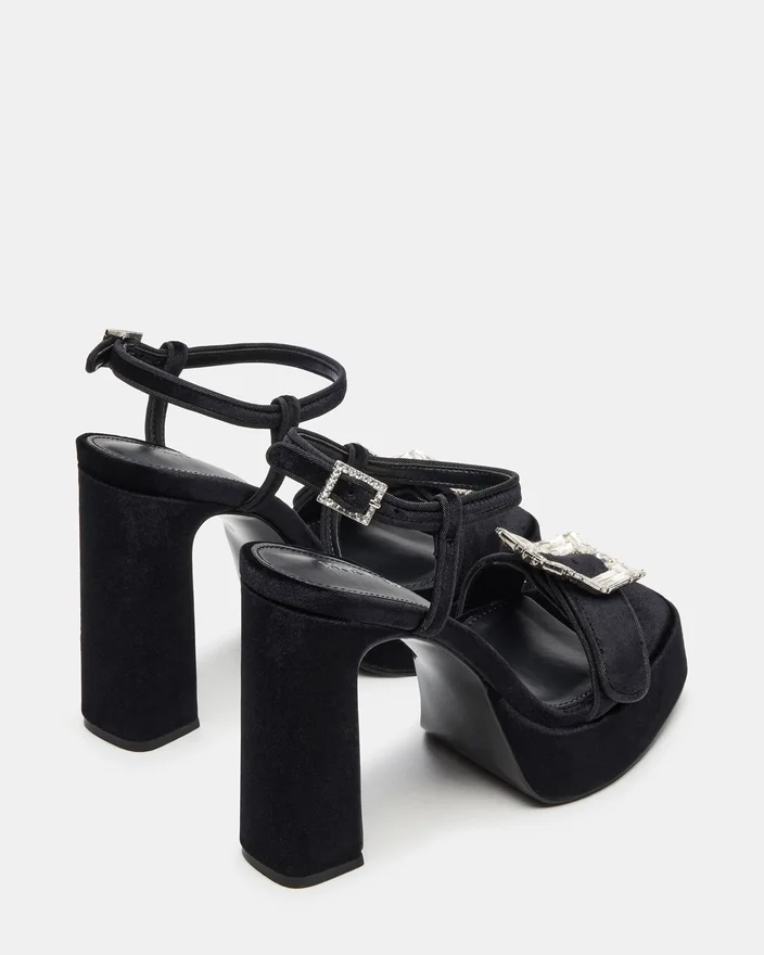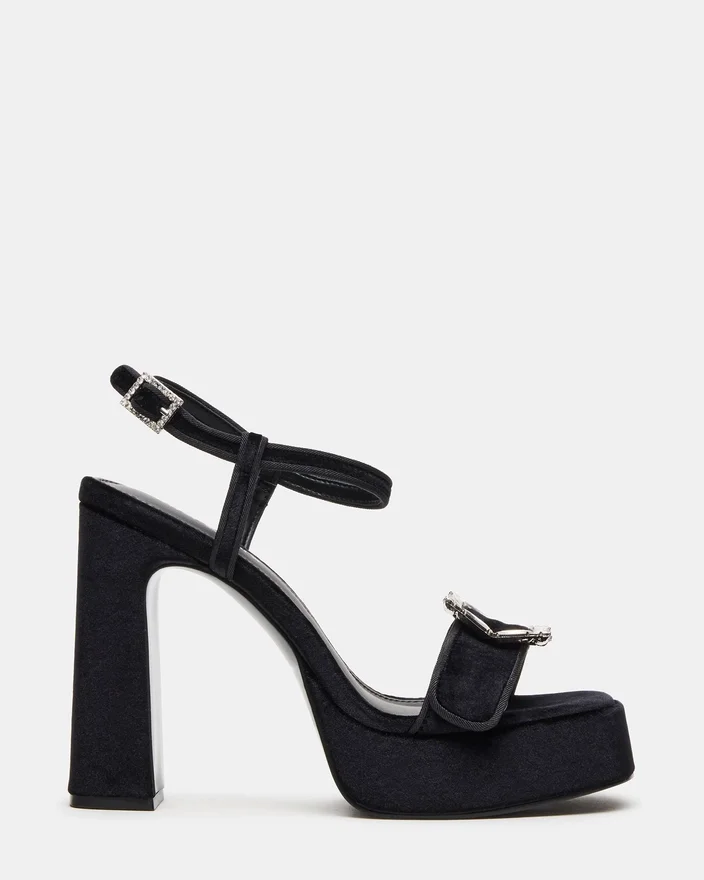 Liandra Buckle Black Velvet este o pereche de încălțăminte elegantă și versatilă, cu pantofi cu toc gros pe platformă și vârf pătrat. Datorită tocului înalt, oferă stabilitate și confort, fiind perfecți pentru a fi purtați toată ziua. Îmbunătățiți orice ținută cu această variantă modernă a unui stil clasic.