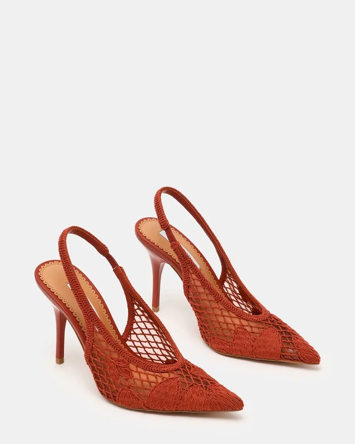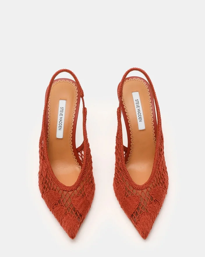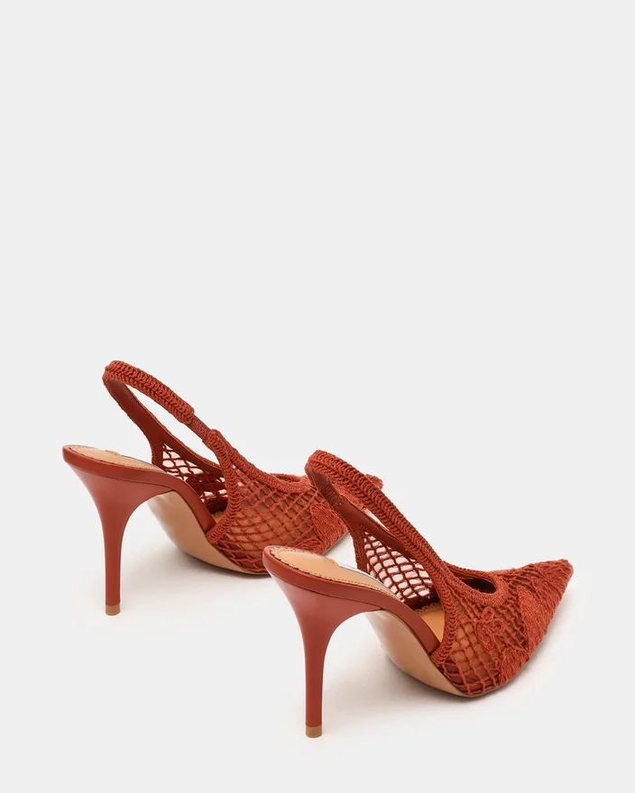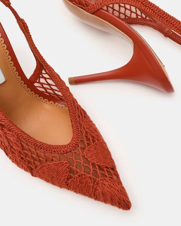 Vă prezentăm pantofii cu toc Andromeda Crochet Terracotta. Acești pantofi eleganți au un design cu vârf ascuțit și toc stiletto pentru un look sofisticat. Cureaua din spate asigură o fixare sigură, iar designul unic adaugă o notă de lux. Perfecți pentru orice ocazie formală, acești pantofi cu toc vor ridica ținuta ta la un alt nivel.