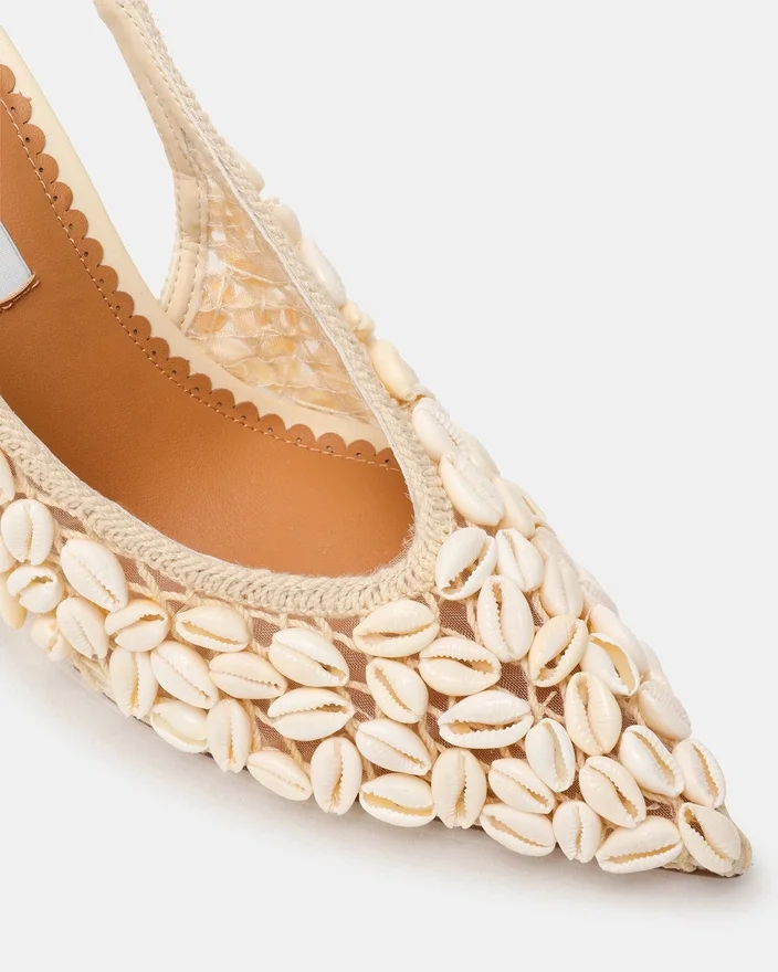 Vă prezentăm pantofii cu toc Andromeda Shell Natural. Acești pantofi eleganți au un design cu vârf ascuțit și toc stiletto pentru un look sofisticat. Cureaua decupață la spate asigură o fixare sigură, iar designul unic adaugă o notă de lux. Perfecți pentru orice ocazie formală, acești pantofi cu toc vor ridica ținuta dvs. la un nivel superior.