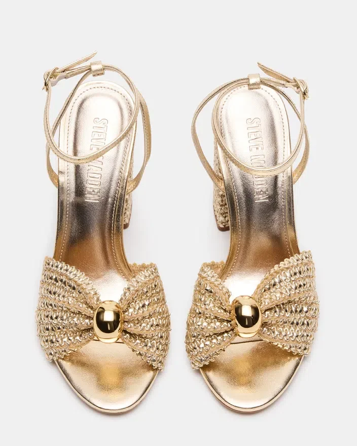 Sandalele Cheyla Gold au un toc elegant din rafie, combinat cu un pantof cu toc gros și stabil, pentru confort pe tot parcursul zilei. Completate cu o baretă sigură la gleznă, aceste sandale oferă atât stil, cât și funcționalitate. Îmbogățiți-vă garderoba de vară cu această încălțăminte versatilă și chic.