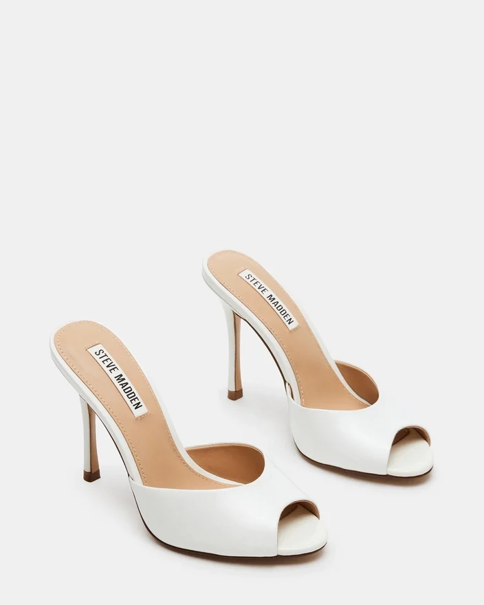 Sandala Priya combină un toc stiletto subțire cu un design retro cu vârf deschis pe cureaua din față.