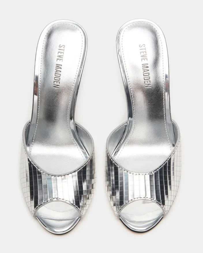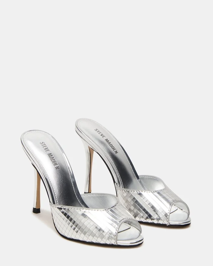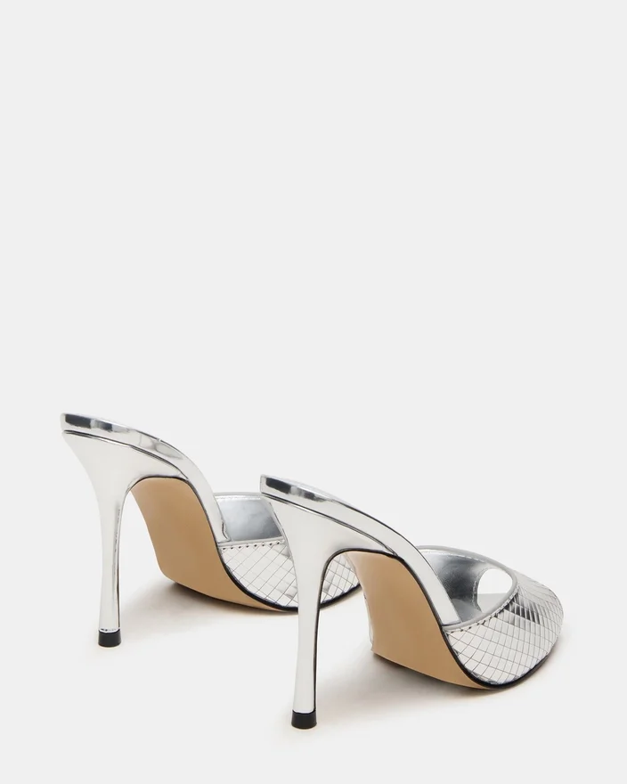Sandala Priya combină un toc stiletto subțire cu un design retro al vârfului deschis pe cureaua glisantă din față.