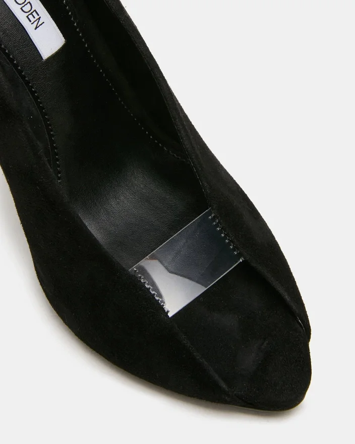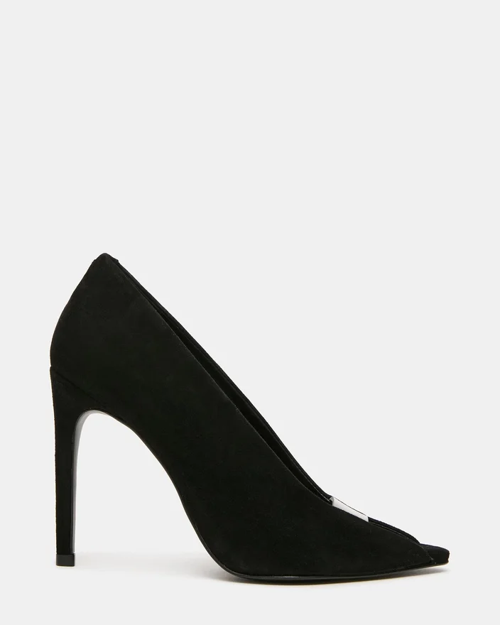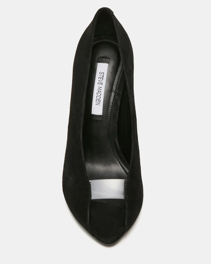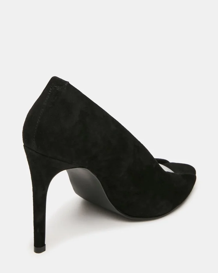 Modelul Santino din piele de căprioară neagră combină eleganța atemporală cu un stil modern. Acest pantof cu toc stiletto impresionant are un design cu vârf decupat care adaugă un plus de farmec, în timp ce detaliul distinctiv al curelei transparente îmbunătățește aspectul cu un stil contemporan. Perfect pentru evenimente de seară sau ieșiri nocturne, acest pantof oferă încredere și stil la fiecare pas.
