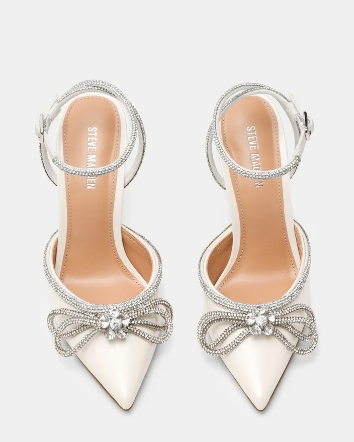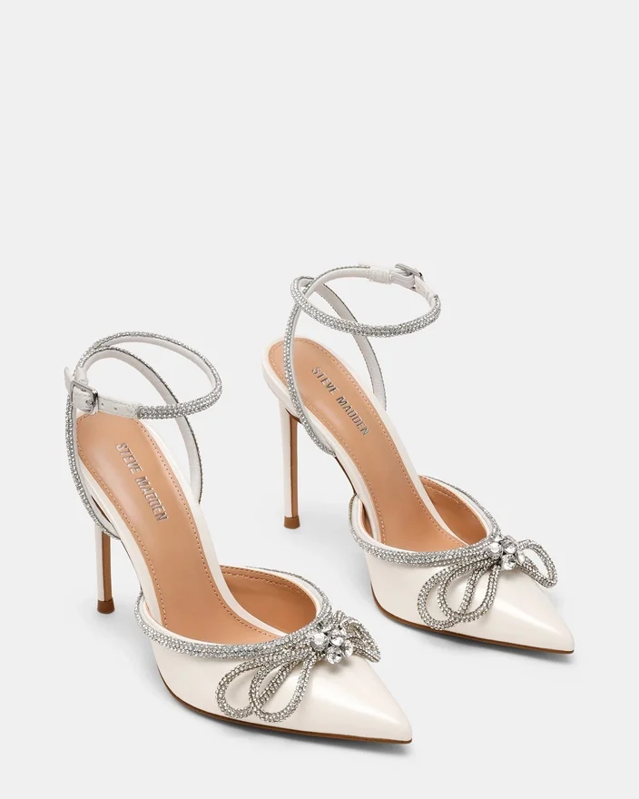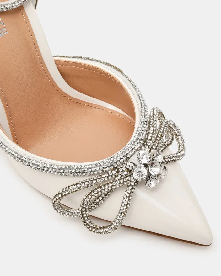 Vei fi vedeta balului în modelul Viable, pantofii cu toc pe care îi vei purta mulți ani de acum înainte. Așezați pe un toc stiletto subțire, această pereche cu vârf ascuțit are o baretă subțire la gleznă, împodobită cu strasuri, și un design cu fundă.