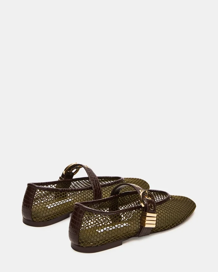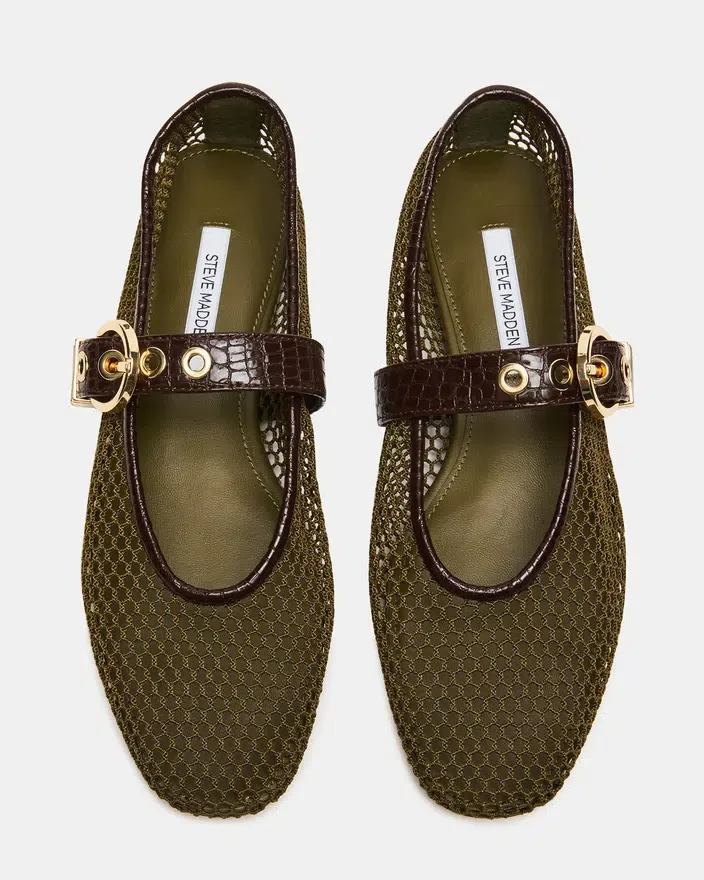 Modelul Lucia Olive Mesh este o balerină Mary Jane rafinată, confecționată din material mesh respirabil, care asigură confort și aerisire. Ornamentele sale delicate adaugă o notă sofisticată, perfectă pentru a completa atât ținutele Casual, cât și cele formale. Concepută cu un echilibru perfect între stil și practicitate, această balerină oferă o potrivire sigură și o siluetă grațioasă pentru eleganța de zi cu zi.