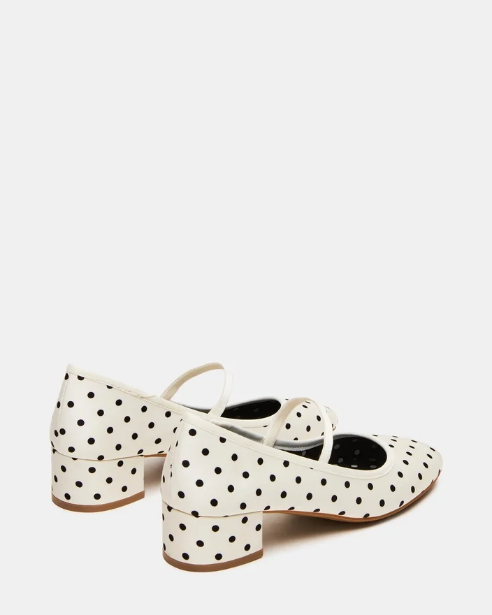 Modelul Mural Polka Dot combină stilul atemporal Mary Jane cu un design contemporan. Această siluetă cu vârf pătrat are un toc gros și robust care oferă confort și stabilitate pe tot parcursul zilei, în timp ce cureaua clasică Mary Jane adaugă o notă rafinată. Realizat din materiale de calitate superioară, acest pantof cu toc se adaptează perfect atât la mediul profesional, cât și la ieșirile de weekend.
