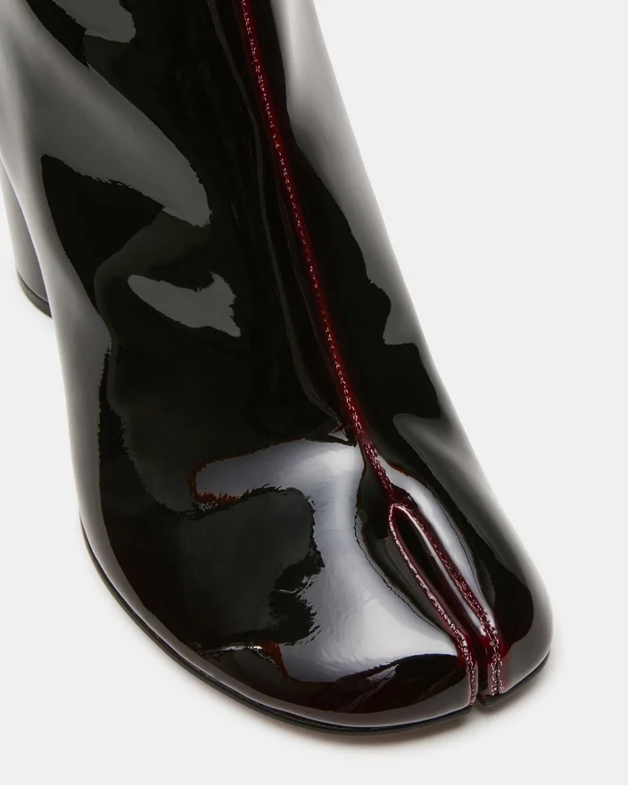 Modelul Caro Dark Cherry Patent prezintă silueta distinctivă Pantofi Tabi cu vârf despicat, oferind o estetică modernă și confort funcțional. Un toc gros și robust asigură un sprijin stabil pe tot parcursul zilei, păstrând în același timp un profil elegant. Această botină combină perfect stilul rafinat cu versatilitatea de zi cu zi.